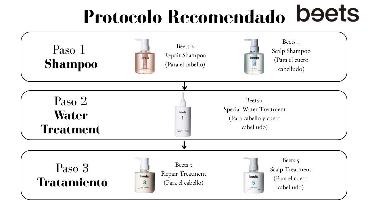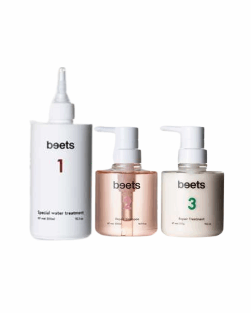 Los péptidos se adsorben y penetran profundamente, fortaleciendo la fibra y reduciendo el daño causado por tinturas, decoloración, permanente o herramientas de calor. Resultado: un cabello más fuerte, brillante y resistente al daño. - Beets 3 — Tratamiento Reparador